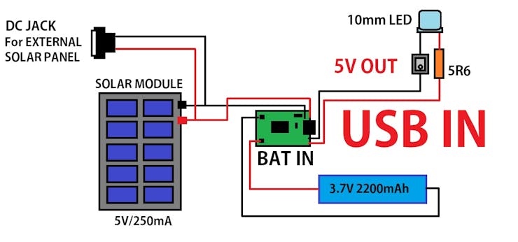 Now the working of this Solar bank is super simple, I used a 3.7V 2200mAh Li-ion Cell which is connected to a Boost module that is based around IP5306.
