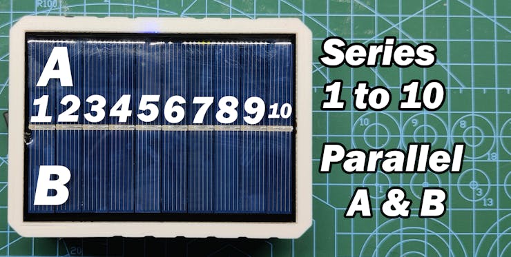 The Module that I'm using has 10 solar cells connected in series so I'm guessing each can output 0.5V, then this line is in parallel with another 10 cells so that would mean each line is of 5V 100mA so two lines would make 5V 200mA.