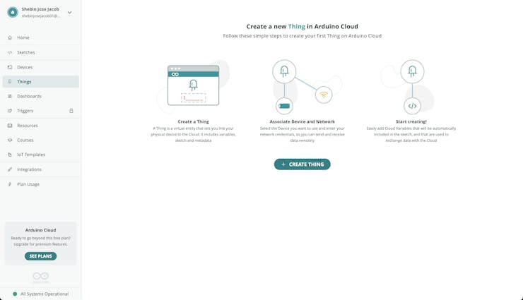 A "Thing" serves as a digital counterpart to your hardware, where variables are established for synchronization between the Cloud and the board. Modifications made within this space will automatically propagate to a generated sketch.