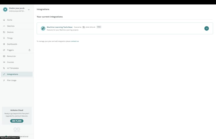 2. Click on the Machine Learning Tool Base integration powered by Edge Impulse