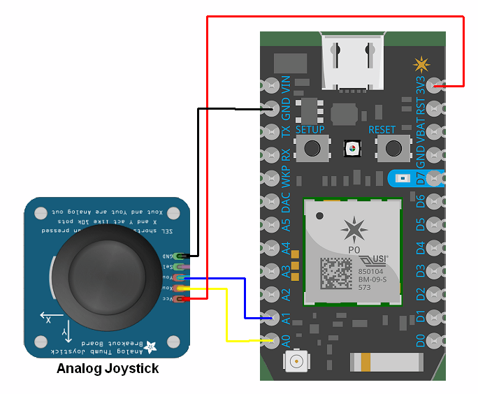 To interface the Analog Joystick with Particle Photon, we need to use ADC on the microcontroller of the Particle Photon board.