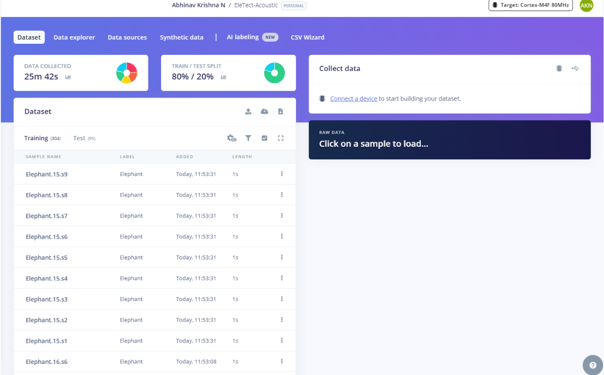 To build a reliable and region-specific vision model, we collected live elephant imagery directly using the Grove Vision AI V2 camera module. Instead of relying solely on online datasets, we captured real photographs and short video frames of elephants in local forest areas and wildlife reserves. These images reflect true environmental conditions such as lighting changes, foliage density, partial occlusions, and natural elephant posture variations.