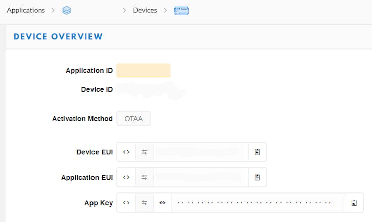 static const char *appEui = "XXXXXXXXXXXXXXXX";static const char *appKey = "XXXXXXXXXXXXXXXXXXXXXXXXXXXXXXXX";static const char *devEui = "XXXXXXXXXXXXXXXX";