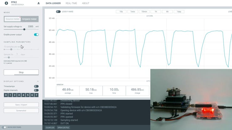 For the project it is very important to see the energy consumption of our device, so I decided with the Nordic Power Profiler Kit II, to do an analysis of the mAh consumed by the device.
