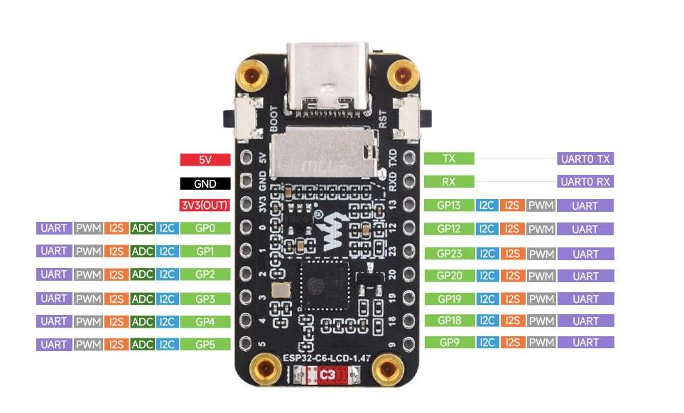 );We configured the pin mapping to match the default wiring of the Waveshare ESP32-C6 1.47" display. These assignments were based on the official Waveshare Wiki documentation.