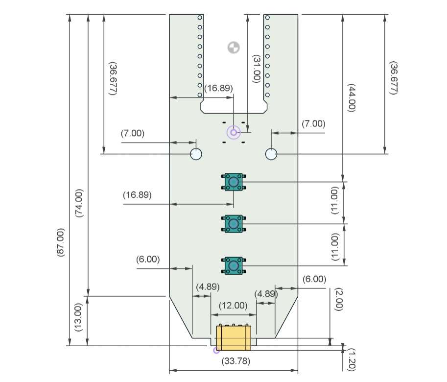 - The enclosure assembly begins by placing the switch actuators into the front half of the body. Next, we position the circuit board over the screw bosses and secure it using two M2 screws.