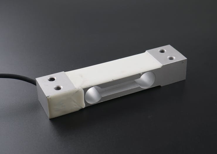 Here we are using a resistive load cell. Resistive load cells work on the principle of piezo-resistivity. When a load/force/stress is applied to the sensor, it changes its resistance. This change in resistance leads to a change in output voltage when an input voltage is applied. The resistive load cell is made by using an elastic member (with a very highly repeatable deflection pattern) to which a number of strain gauges are attached.