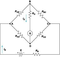 The four strain gauges are configured in a Wheatstone Bridge configuration with four separate resistors connected as shown in what is called a Wheatstone Bridge Network. An excitation voltage – usually 5V is applied to one set of corners and the voltage difference is measured between the other two corners. At equilibrium with no applied load, the voltage output is zero or very close to zero when the four resistors are closely matched in value. That is why it is referred to as a balanced bridge circuit.