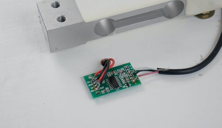 One end of the load cell should be rigidly connected and another end should be floated in the air, then only we get the proper weight of the object. Then we wired the load cell to the HX711 break-out module by installing it.