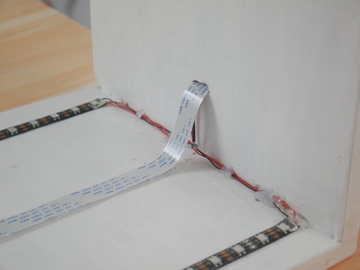 Then these strips were parallelly connected. The flex cable from the camera module and the wire from the strips were pulled out.