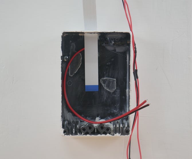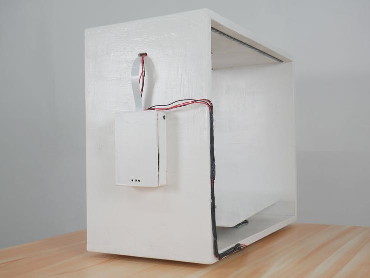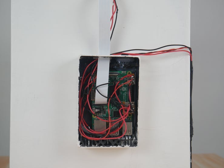 For placing the raspberry pi we have used a white painted black box. It is then screwed to the cabinet.