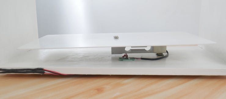 These plywoods were sanded with 100 grit sandpaper to get a smooth finish. For placing the load cell on the plywood, I made necessary holes in the wood with a drill after properly measuring the spaces for the component. And these plywoods were made to cabinet properly with pieces of the nail.