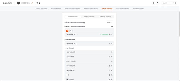 Camthink NE301 supports WiFi and Cellular modules. Choose the method to make sure the network access is connected.