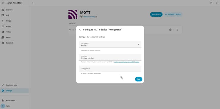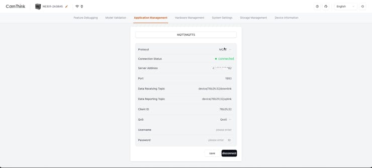 - Server address: the IP address of the MQTT broker.