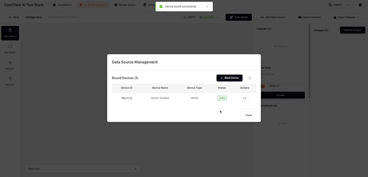 Open this project and bind the device for image collection, you will need to create this device firstly.