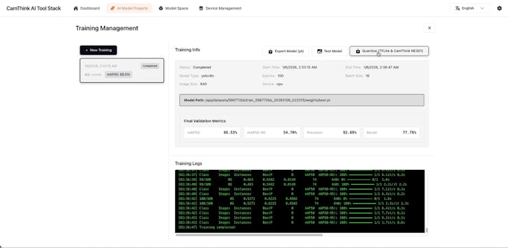 - Camthink AI Tool Stack, an end-to-end AI toolset covering the entire workflow from data collection, annotation, training, quantization, to deployment.