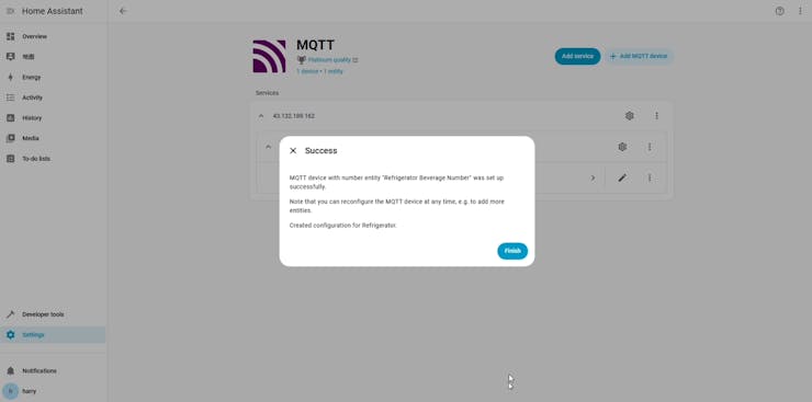 Submit to save it. The MQTT connection is ready.