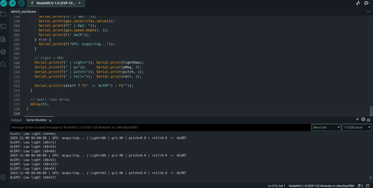 - GPS Module (NEO-M9N) – Vehicle location logging
