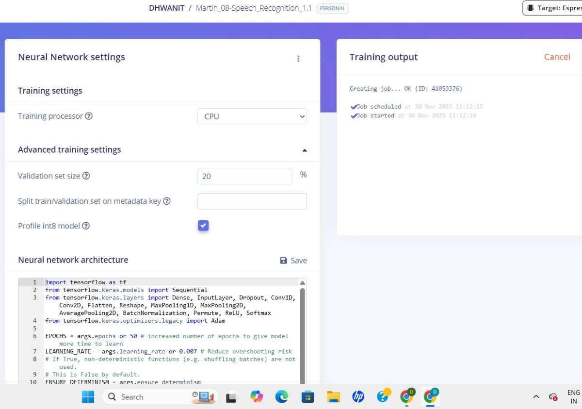 Once the model was ready, I exported it so that it could be deployed on the ESP32.