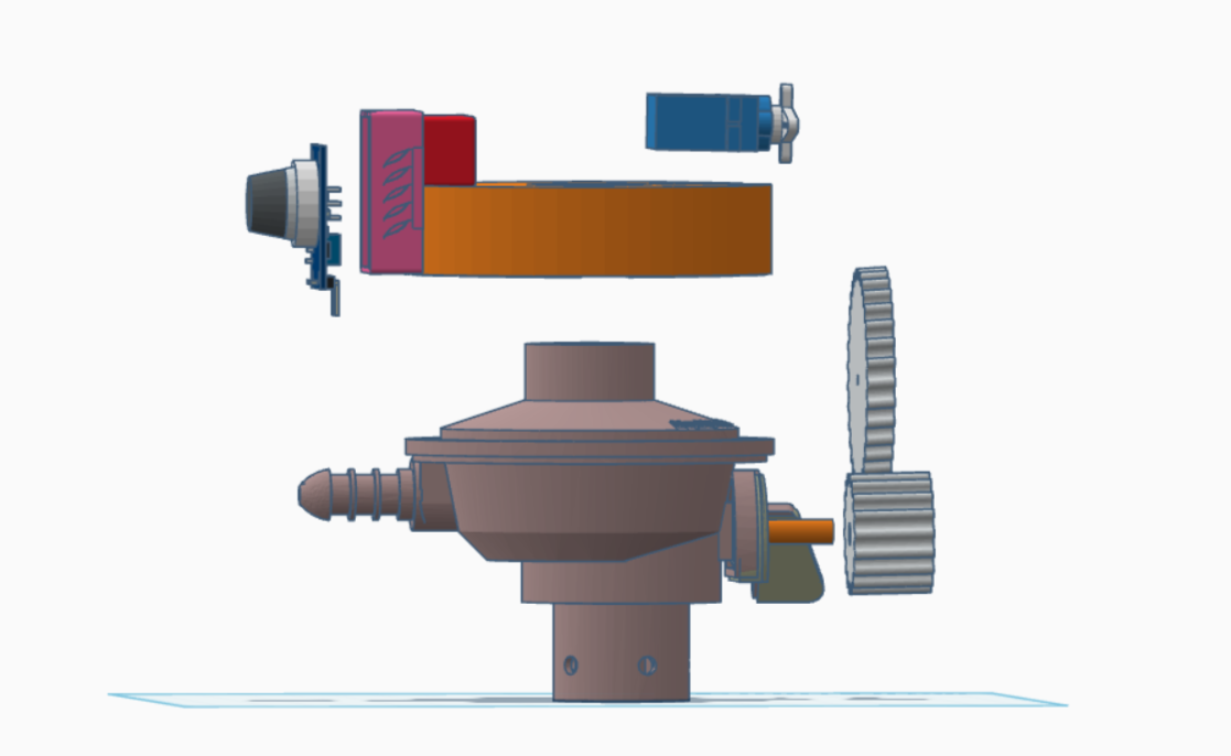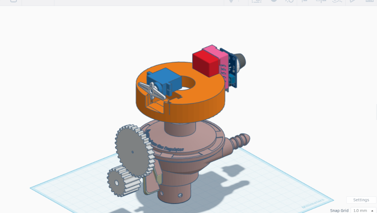 Mounting Configuration: The servo attaches to a 3D-printed bracket that clamps around the existing regulator body. The servo horn connects to the knob using a custom-printed coupling. When the servo rotates from 0° to 90°, it physically turns the regulator knob from fully open to fully closed. I designed the mount to be non-permanent you can remove it and return the regulator to normal manual operation anytime.