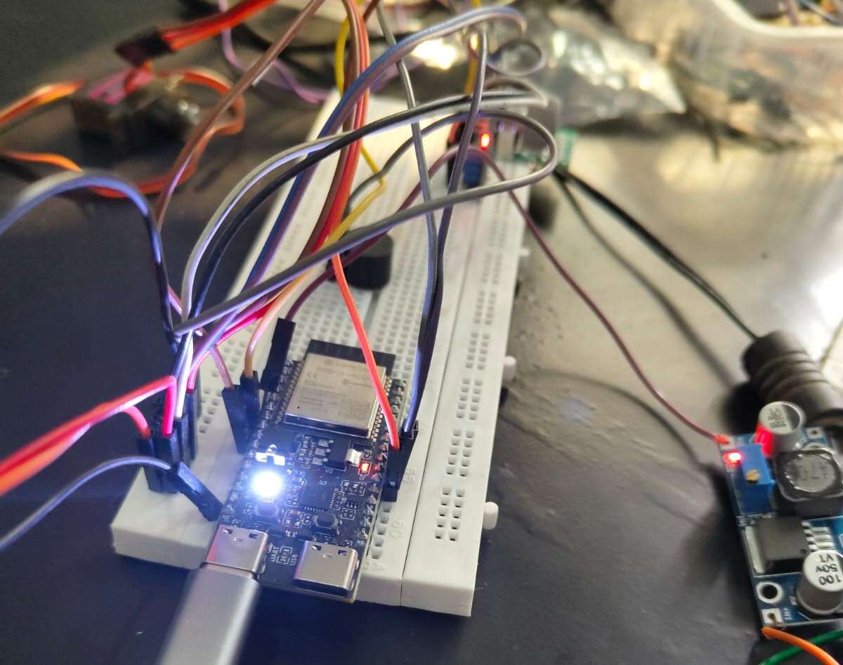 Before soldering anything permanent, I built the entire circuit on a breadboard. This let me test code and fix bugs without worrying about desoldering mistakes.