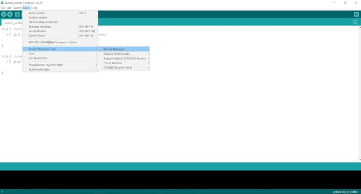 * Lets's check whether boards are installed or not, go to tools -> boards
