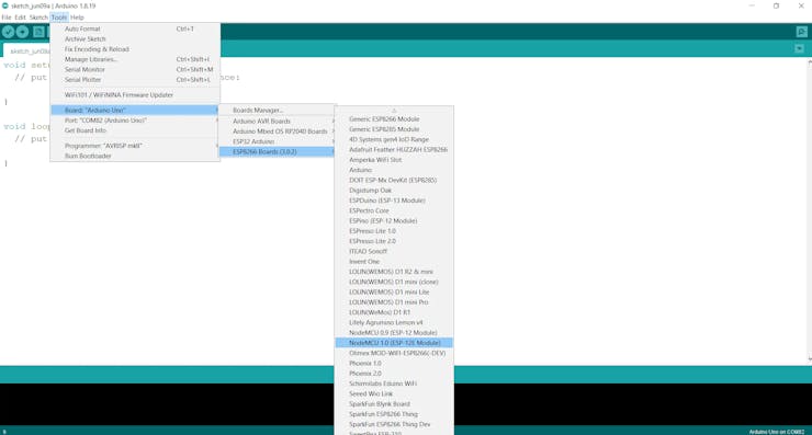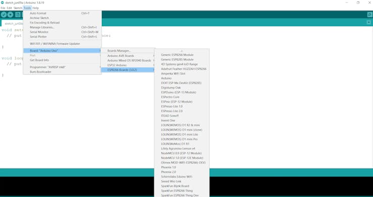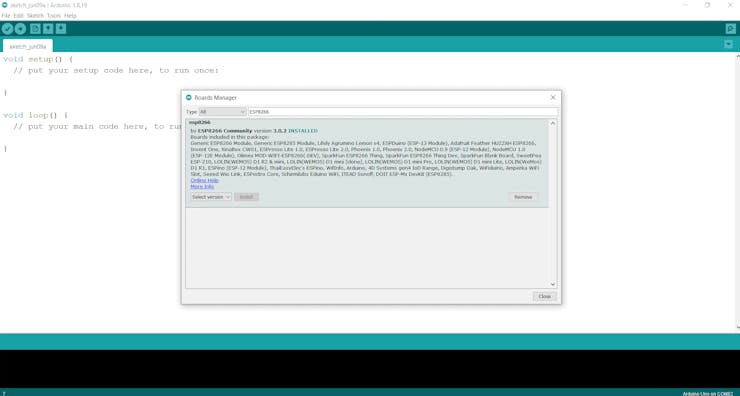 * Now install ESP8266 board, go tools -> boards -> board manager