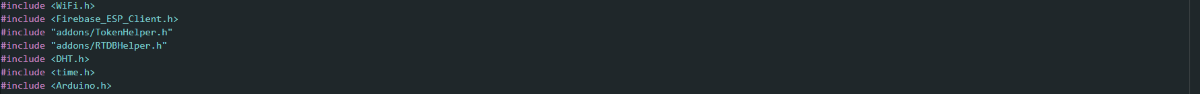 These lines import the libraries we need. Think of them as toolboxes—each library gives us ready-made functions to work with WiFi, sensors, and cloud services.