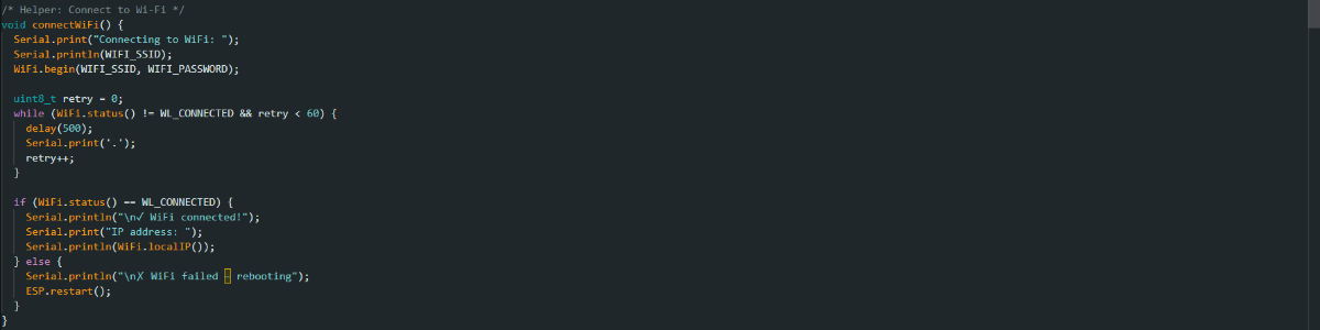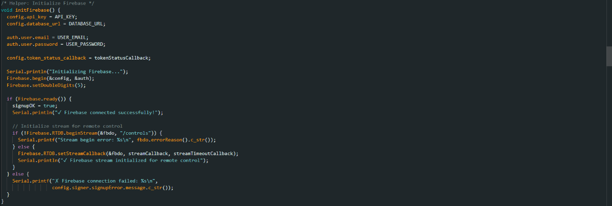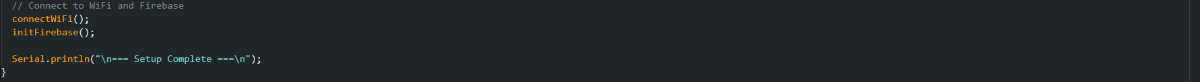 These are your credentials and configuration. Before uploading to ESP32, you'll replace these with your actual WiFi name, password, and Firebase details. It's like personalizing the system for your use case.