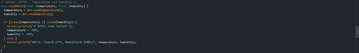 - Verify DHT11 data line is pulled up with 10kΩ resistor