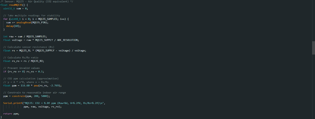 - Initial 20 seconds after power-on, readings might be unstable (let MQ135 warm up)