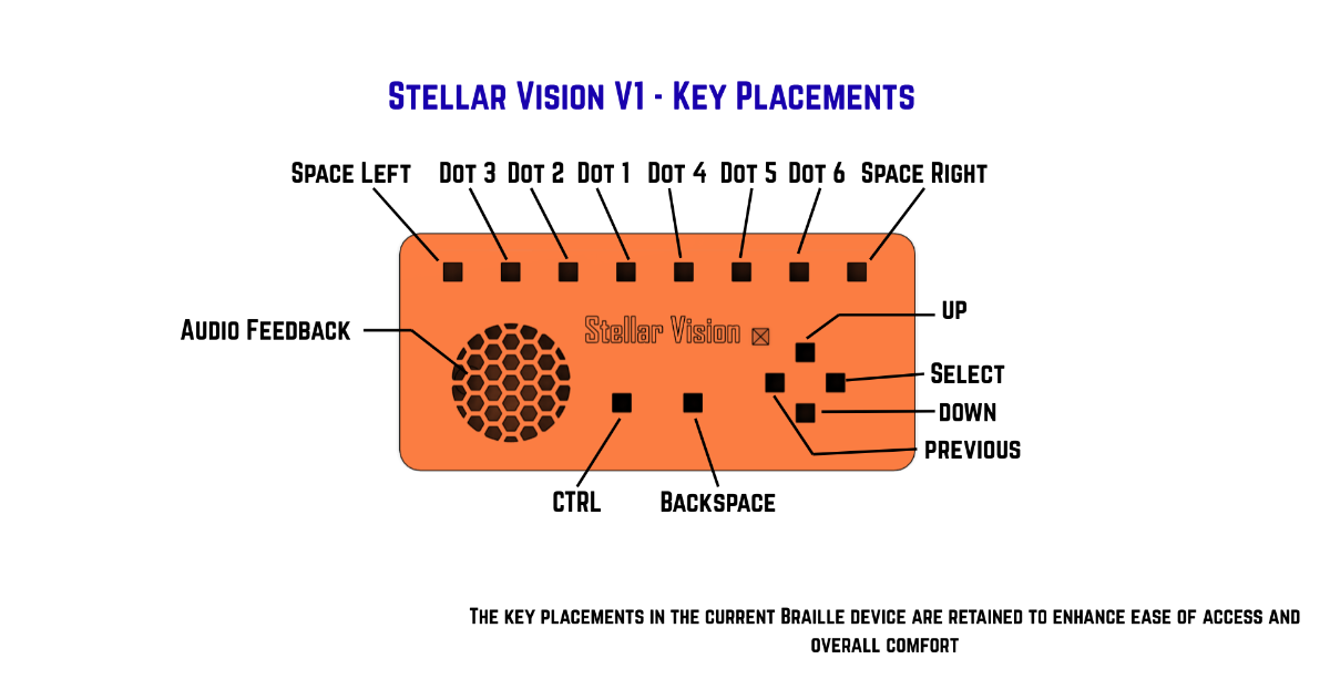 Stellar Vision V1 is an advanced assistive Braille input system designed to empower visually impaired users through a combination of precision hardware, intelligent software, and seamless connectivity.