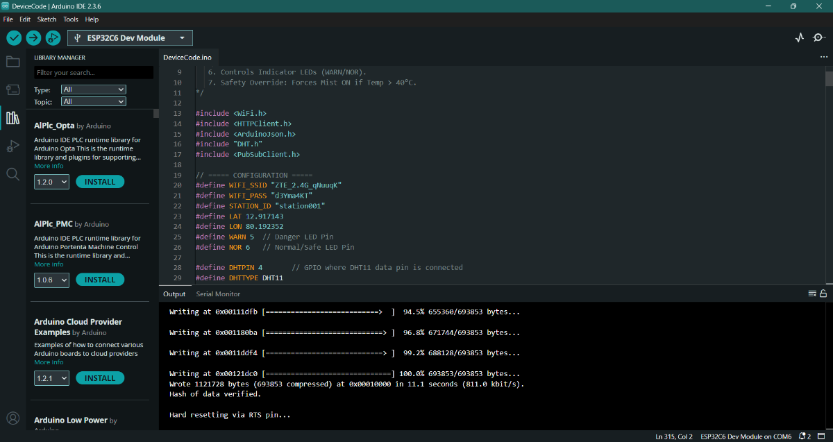 - Communication: Sends all this data to our laptop (the Edge Gateway) via Serial for processing and waits for a command.