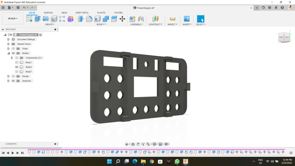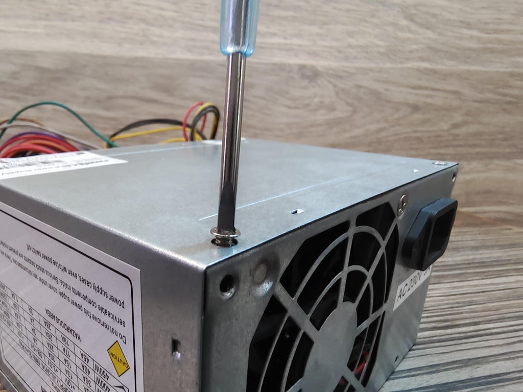 - I have drilled 4 holes through the body and power supply to screw the power supply to the body.