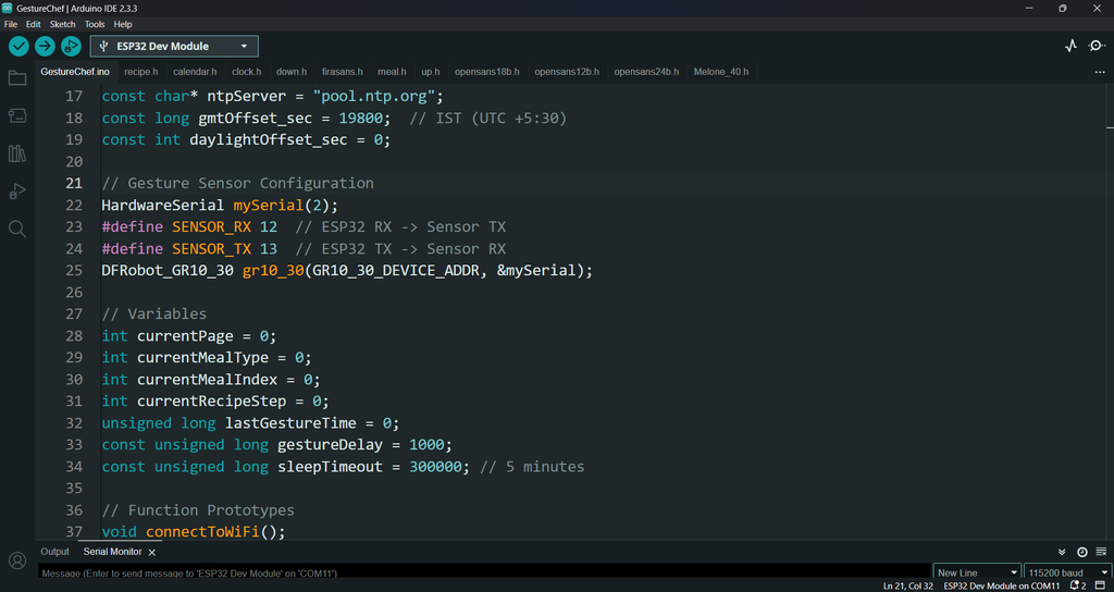 Download the GestureChef repository, extract the files, and open GestureChef.ino in Arduino IDE.