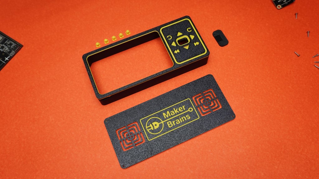 Start by gathering the 3D-printed case, 5 buttons, and the display.