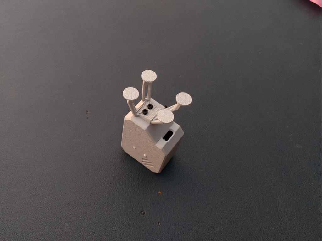 Once the cover is assembled, it’s time to attach the landing-style legs that give the Orbit Clock its unique satellite look. Take the 3D-printed legs and align them perfectly with their dedicated slots at the bottom of the body.