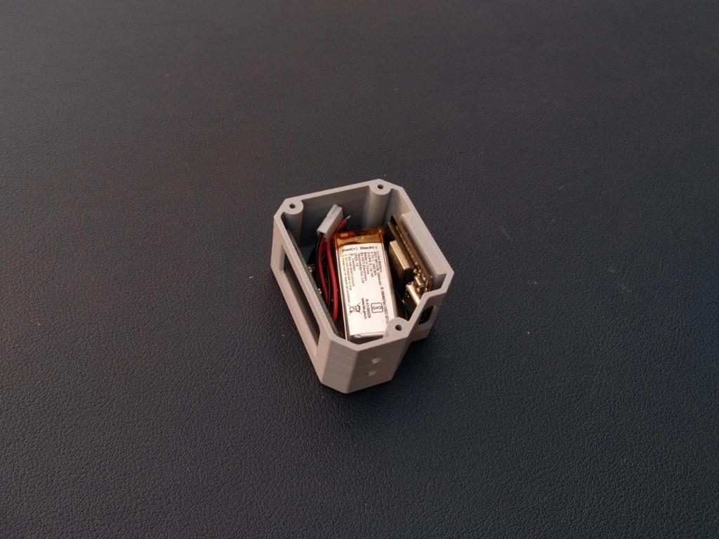 Simply connect the battery to the microcontroller following the provided circuit diagram, then place it securely in the empty space inside the enclosure.