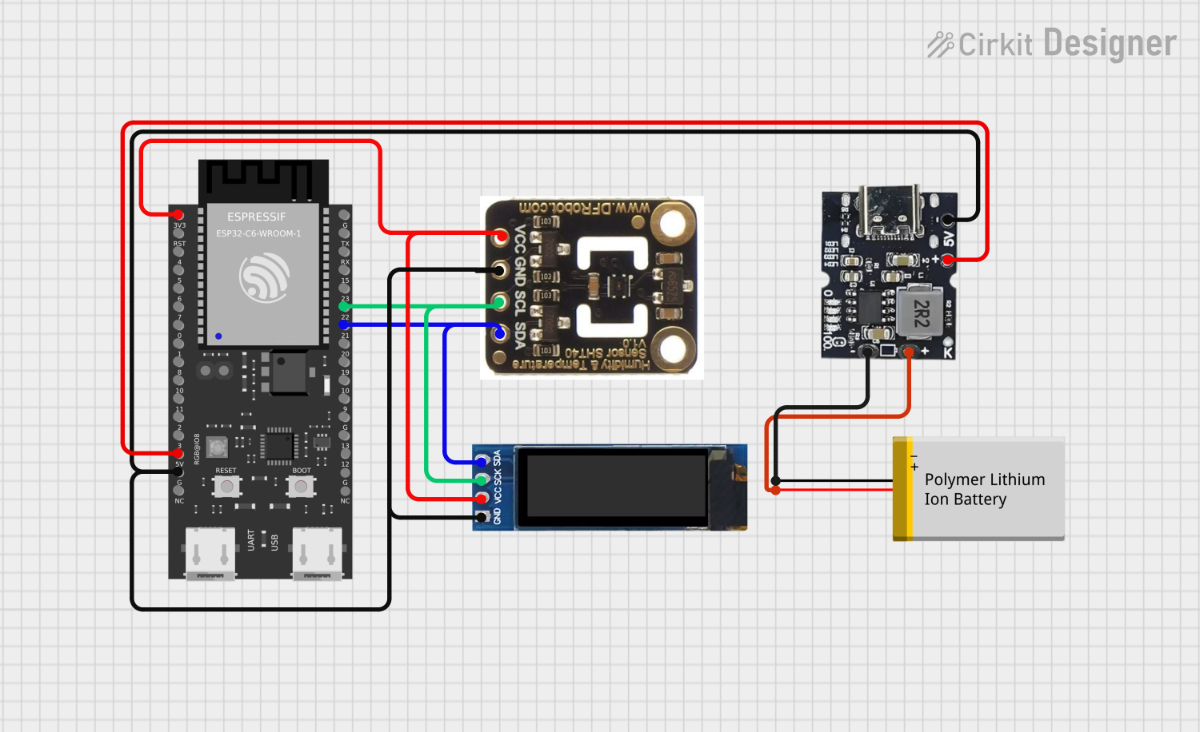 With the DFRobot Beetle ESP32-C6, Wi-Fi NTP synchronization ensures precise local time, and the onboard SHTC3 sensor provides accurate environmental data. The USB-C connection keeps the battery charged for uninterrupted operation.