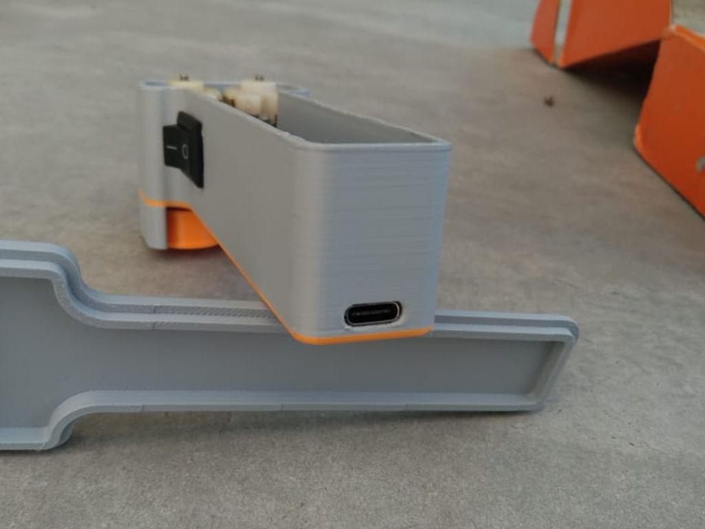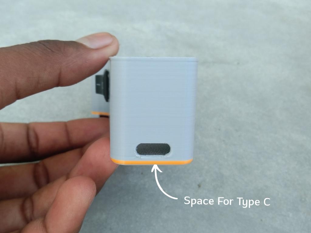 Once the motors are securely in place, it's time to Secure the TP4056 charging module. Locate the dedicated slot for the module on the base. On the back side, you’ll see a cutout perfectly shaped for the Type-C port. Carefully align the port with the cutout so it fits nicely. Once aligned, use a small amount of super glue to fix the module in place. Make sure the port is straight and accessible from the outside. Let the glue dry completely before moving on.