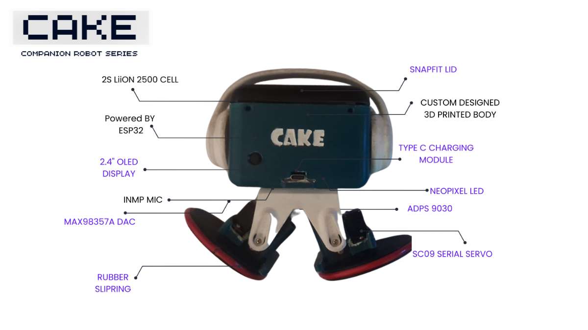 Congratulations on creating your very own CAKE desktop companion! From a collection of parts to an adorable, interactive robot friend, you've completed a project that combines electronics, programming, and design into something truly special.