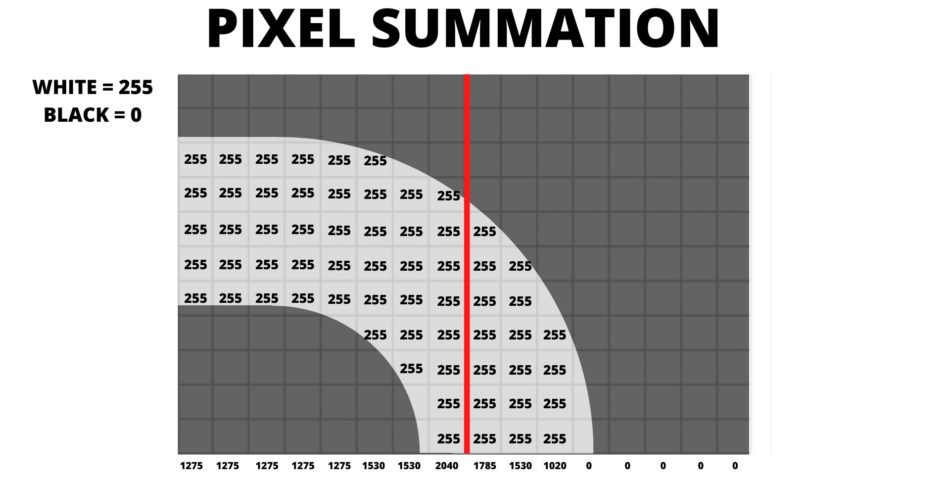 Lucky for us both processes can be computed with the same function. By sumation of these pixels we are basically finding the histogram. Therefore we will call this function ‘getHistogram’. Lets assume we are doing the second step where we have to sum all the pixels and later we will come back to step one to find the center of the base.