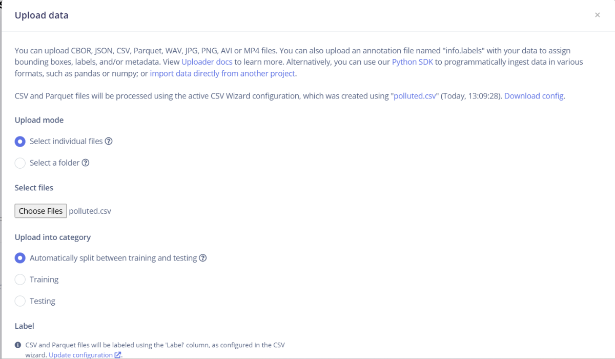 3. Make sure you have enough train and test data shown on the window, approx 80/20%.