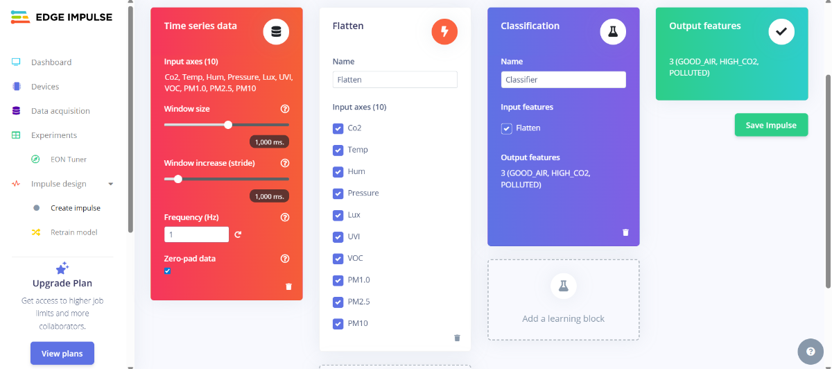 4. Create Impulse, Add Flatten and Classification as shown below. And Train the dataset.