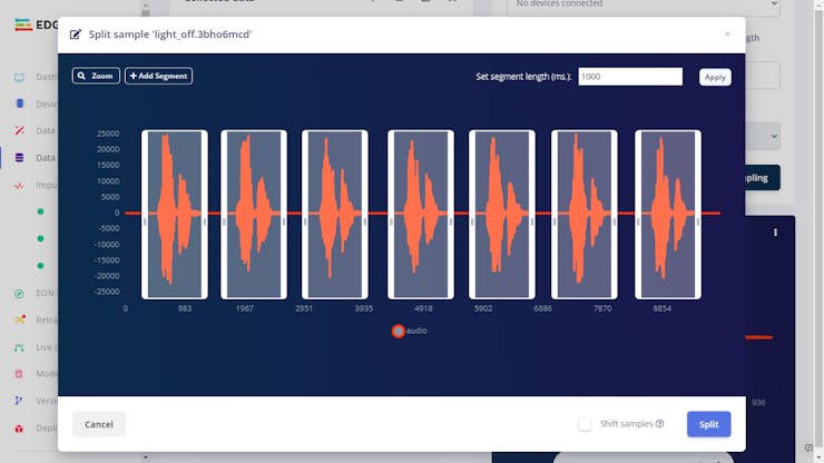 This project is built using Edge Impulse. The public repository can be found here. You may clone the project and collect your own voice data. I have collected 10 seconds of data for each class.