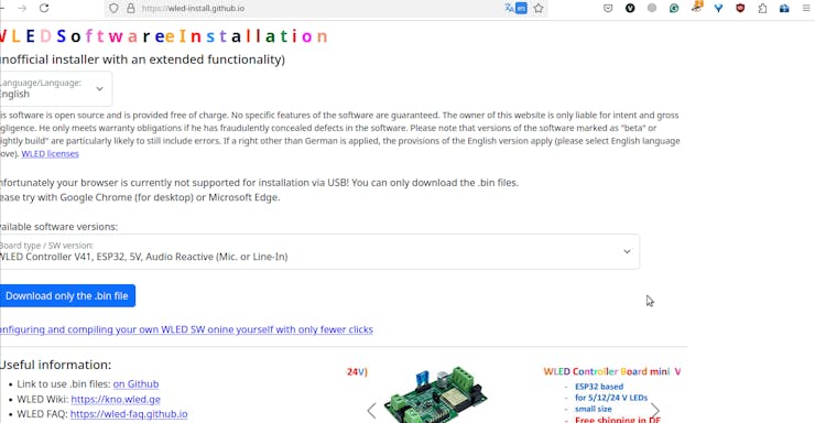 If you're new to WLED, you might encounter some installation challenges with the initial website you see. I recommend visiting wled-install.github.io for problem-free installation. For additional help, check out the 30-second video linked below.