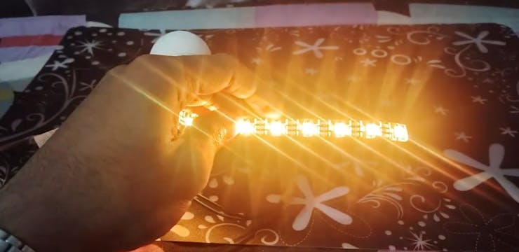 The next step was adding the LED strip. I used nine LEDs for the lamp, soldering the VCC, ground, and data pins together. The connection to the ESP32-S3 was straightforward: