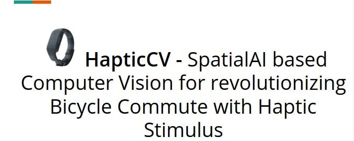There's simply lot of room to develop in improving Bicycle Assistance Systems using SpatialAI and Tactile Tech Stack. This project was inspired by Brandon Gilles's(CEO - luxonis) Efforts on Creating Commute Guardian, software and hardware to prevent bicycle accidents using SpatialAI. This project, HapticCV is contributing to Open Source Software system using DepthAI and Neosensory Buzz to imrpove bicycle safety with real time alerts through Haptic Stimulus, for not just detection objects but also alerting the rider. Upon developing this novel stream of Bicycle Safety in SpatialAI, I'll be working on integrating Velocity Estimation as well, to offer Alerts based on Speed of the Vehicle as well as depth, so that the rider is very well aware about potential overtaking from either side. There are plenty of opportunities in this field and I look forward to improving types of buzz paterns and varying intensity with Depth and Velocity to be easy to distinguish and understand rear view better. I also aim at integrating Person Tracking and Vehicle Tracking, to only track the depth and velocity of a particular type of object, or an object that exceeds certain velocity threshold. I've already scripted this using DepthAI gen2 API, however due to time constraint I wasn't able to implement and test this out on the Neosensory Buzz.