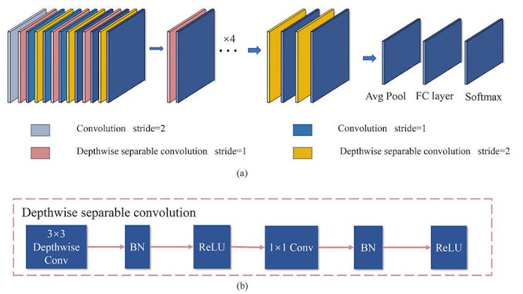 Pedestrian and vehicle detection network based on MobileNet v1.0 + SSD. MobileNet is a type of convolutional neural network designed for mobile and embedded vision applications. They are based on a streamlined architecture that uses depthwise separable convolutions to build lightweight deep neural networks that can have low latency for mobile and embedded devices.