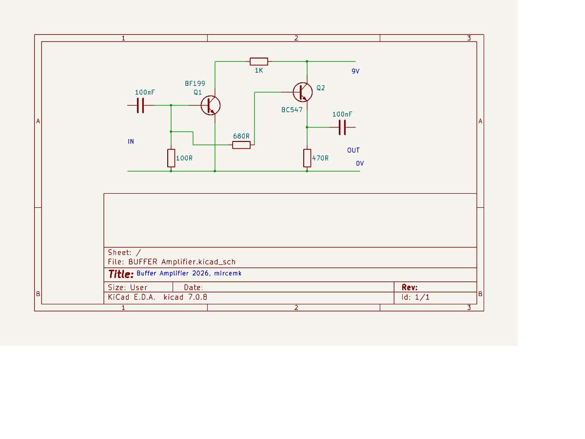 You can see two more components mounted on heat sinks and an additional assembly with two transistors on the PCB. The assembly is a Buffer Amplifier that raises the signal level from 1 to 5Vpp, this one is an LM317 stabilizer and provides 9V for the buffer circuit and the other one is a 7805 linear stabilizer through which the AD98500 module is powered. I made these additional modifications for the needs of one of my devices with special requirements, otherwise the assembly without these modifications is quite sufficient, using a direct 5V power supply. You can also see the schematic of the buffer amplifier below.